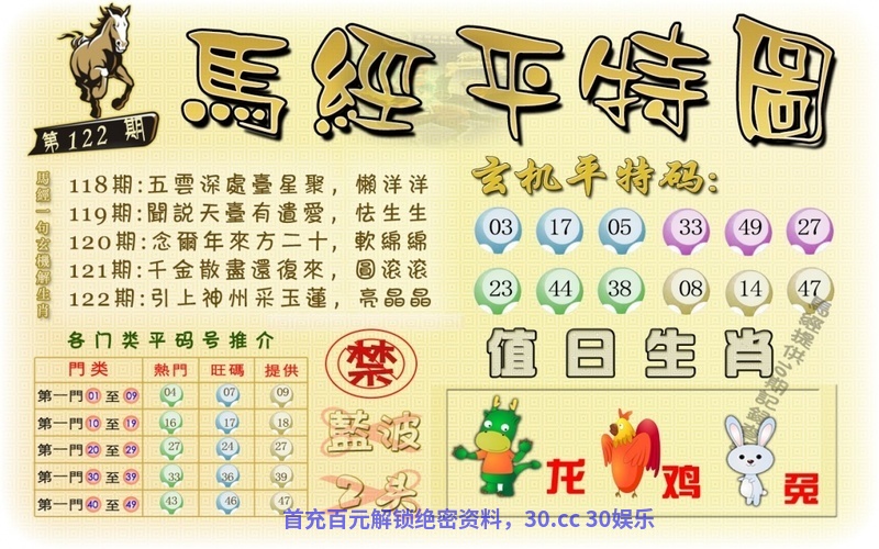 | 127期:六肖中特【马猴羊龙鸡虎】开:發00中 |